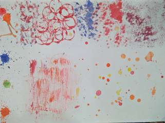 Using watercolour and different materials such as sponges, toothbrush, leaves and many more...